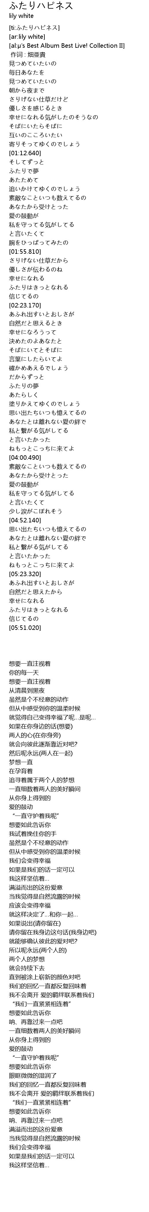 | [04:55.700] | 思い出たちいつも憶えてるの |