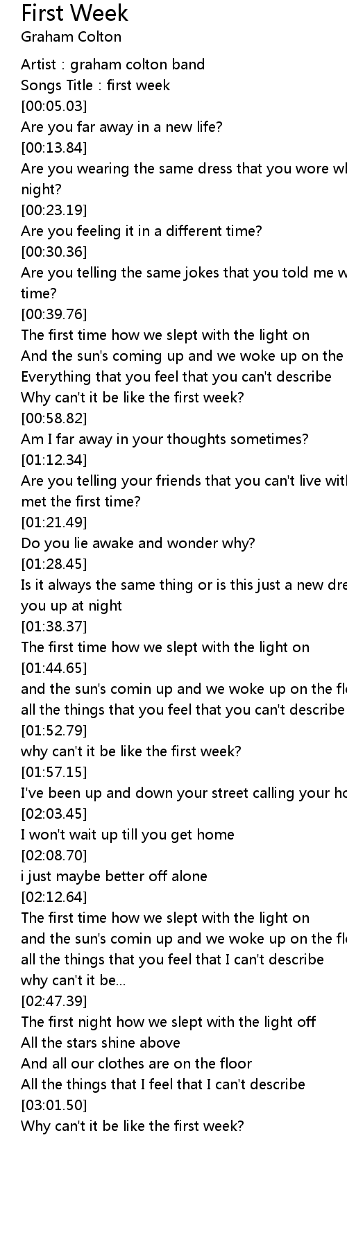 | [00:16.29] | Are you wearing the same dress that you wore when we met the first night? |