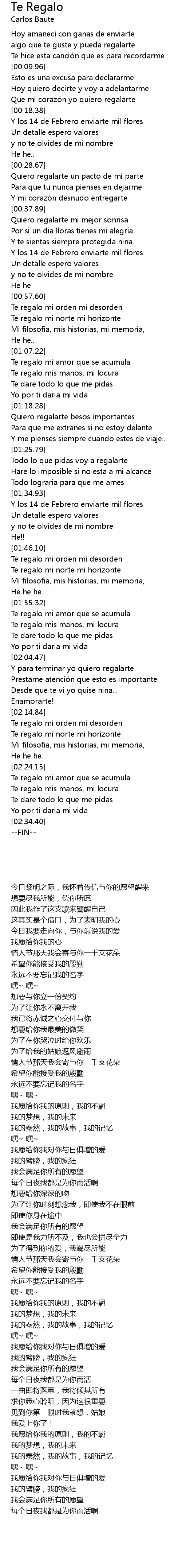 | [02:26.60] | Te regalo mis manos, mi locura |