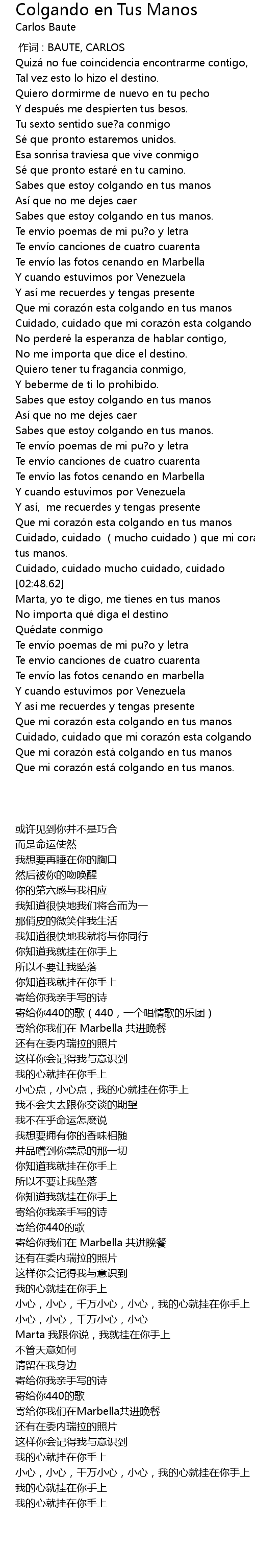 | [00:00.00] | zuò cí : BAUTE, CARLOS |