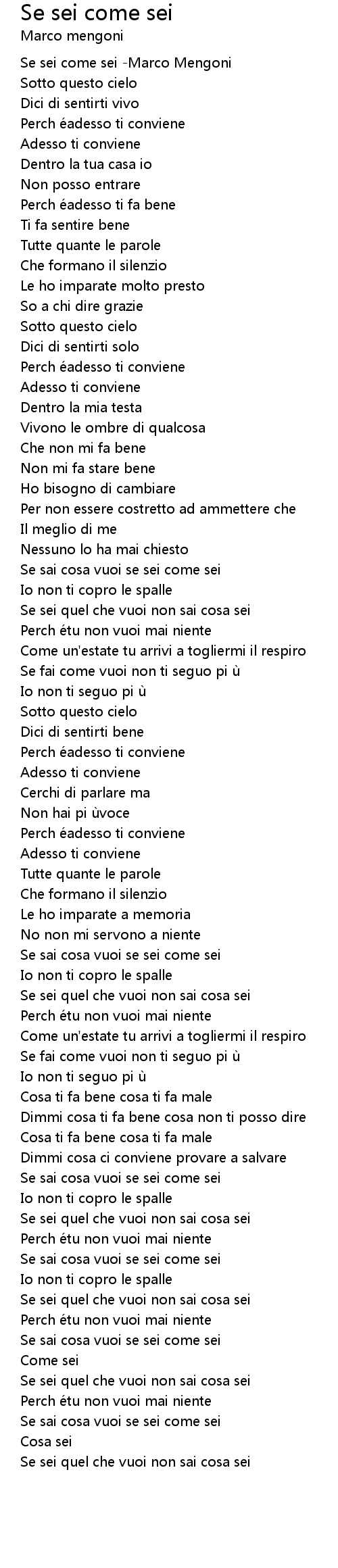 | [00:00.00] | Se sei come sei Marco Mengoni |