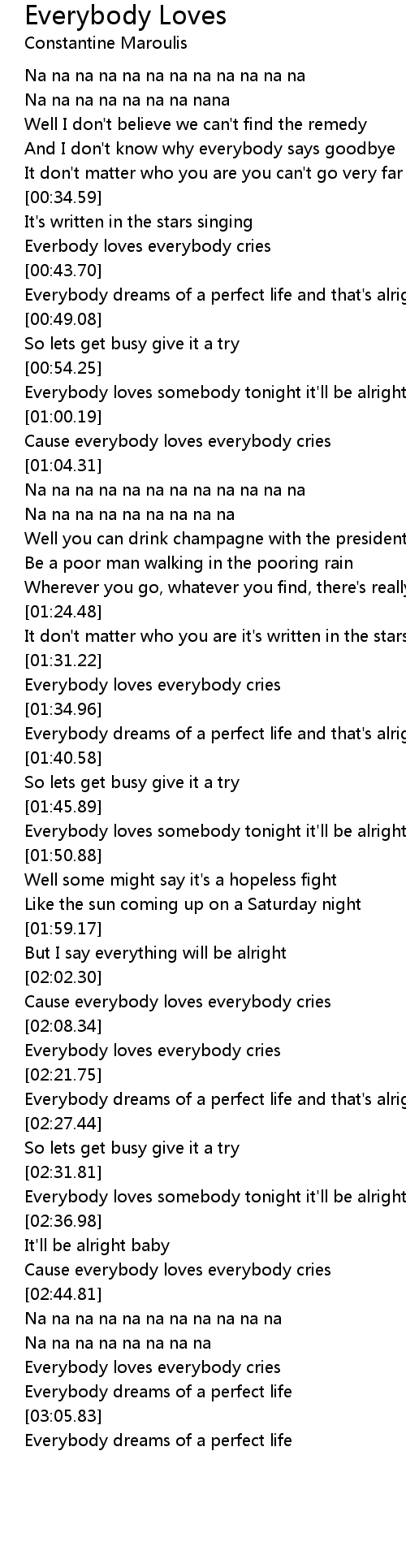 Everybody loves everybody cries |