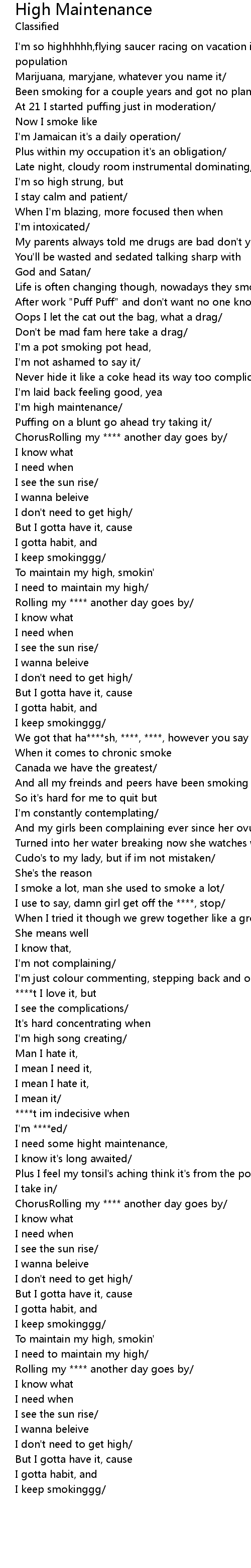 I need to maintain my high/ |