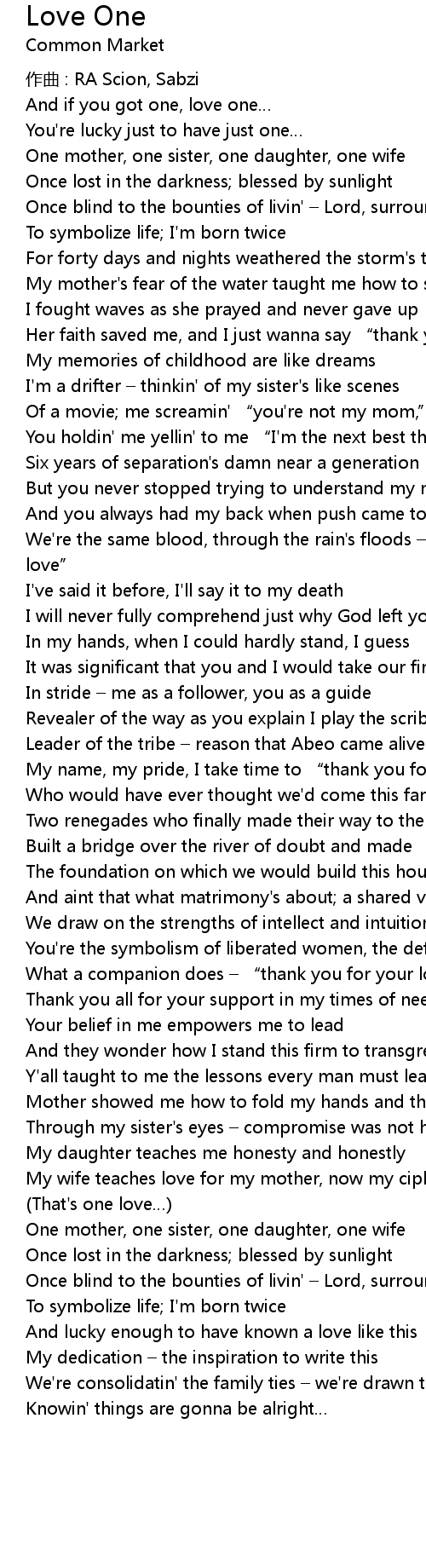 | And if you got one, love one | |