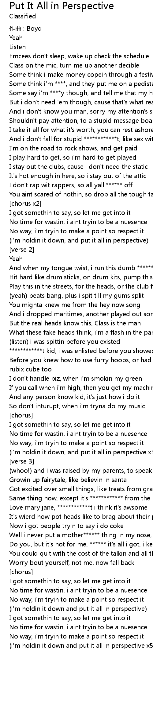 | (i'm holdin it down and put it all in perspective) | |