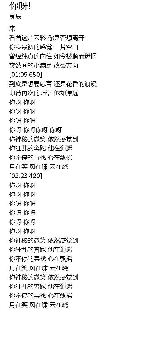 | [01:35.120] | 你呀 你呀 |
