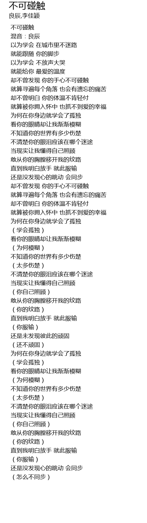 | [00:01.32] | 不可碰触 |