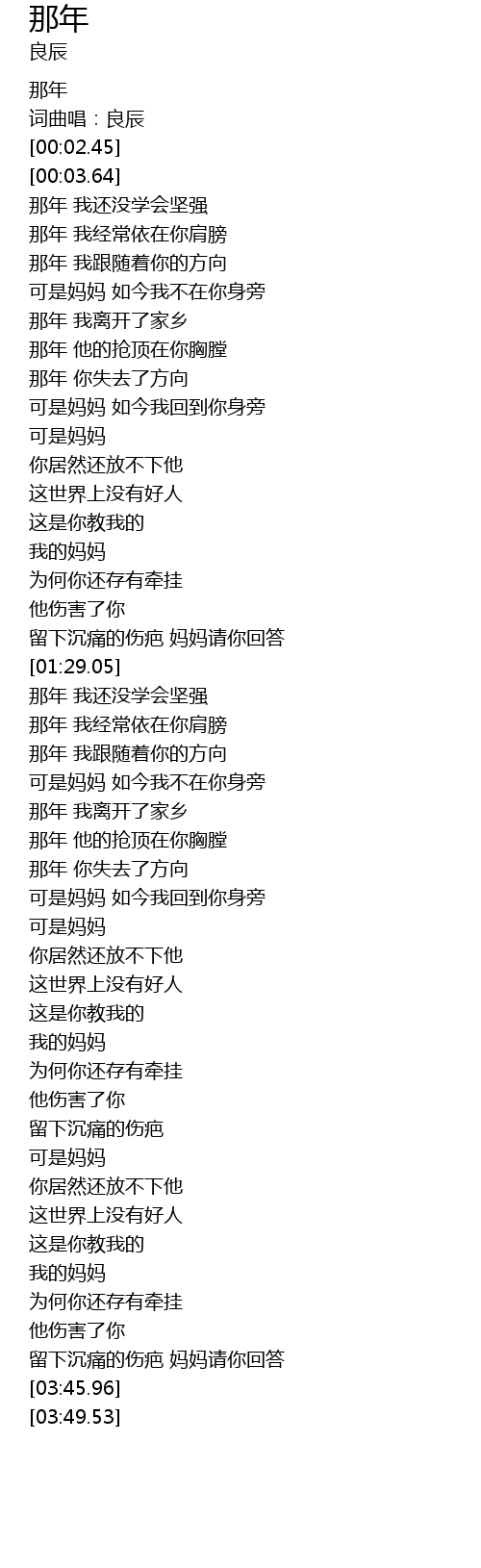 | [03:38.12] | 留下沉痛的伤疤 妈妈请你回答 |