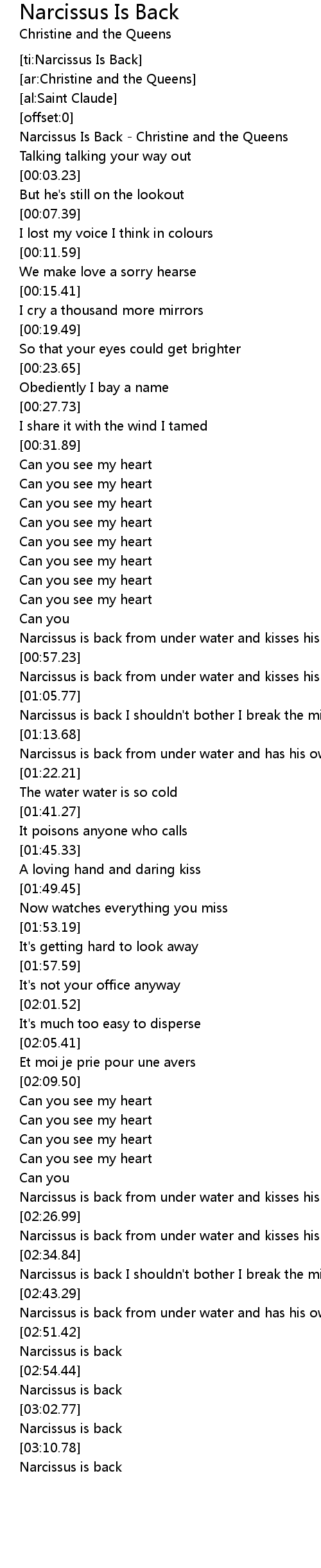 Narcissus is back I shouldn't bother I break the mirrors that I meet |