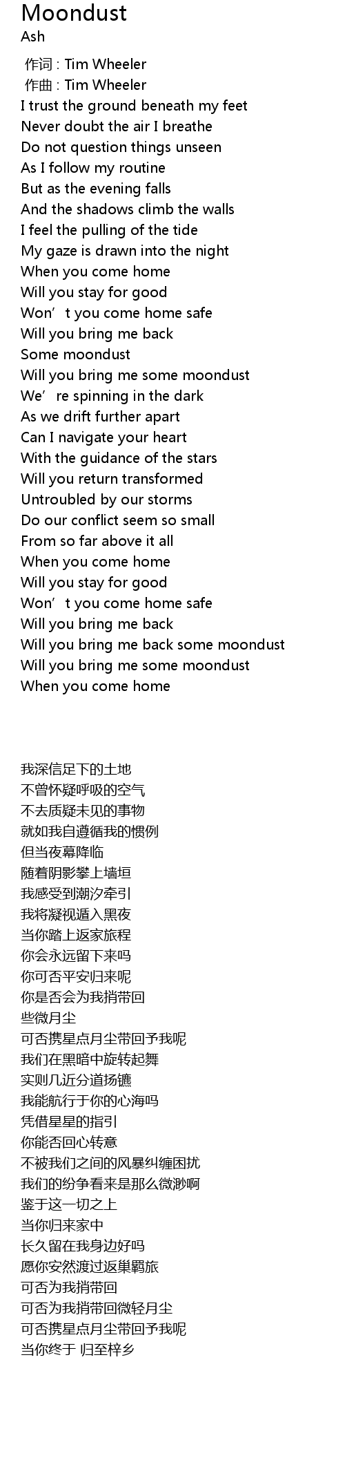 | [02:33.00] | Will you bring me back some moondust |
