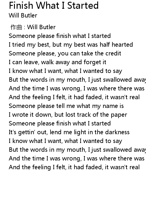| [00:14.700] | Someone please finish what I started |