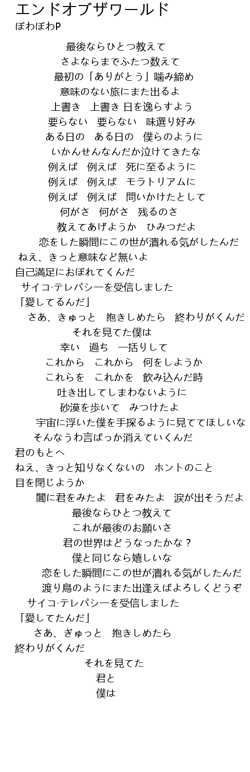 | Song | エンドオブザワールド |