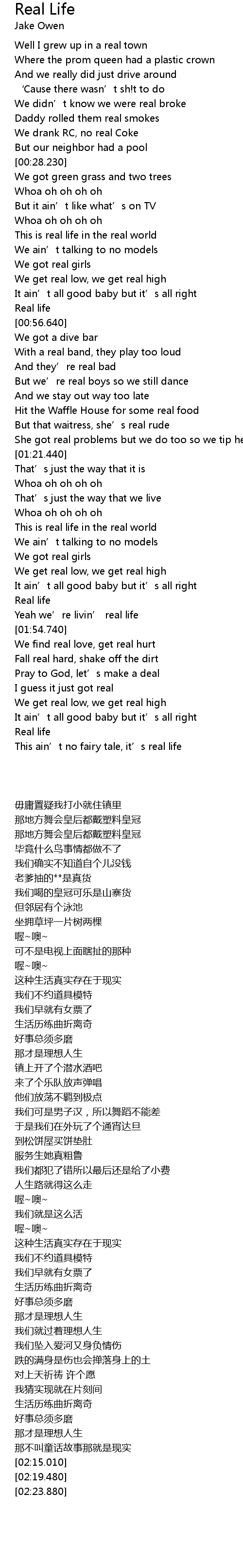 | [00:50.530] | It ain' t all good baby but it' s all right |