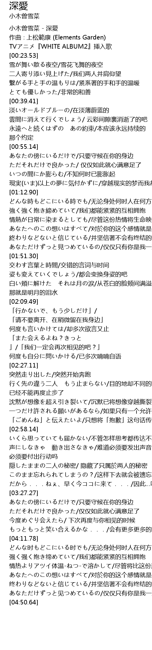 | [00:01.53] | 小木曽雪菜 - 深愛 |