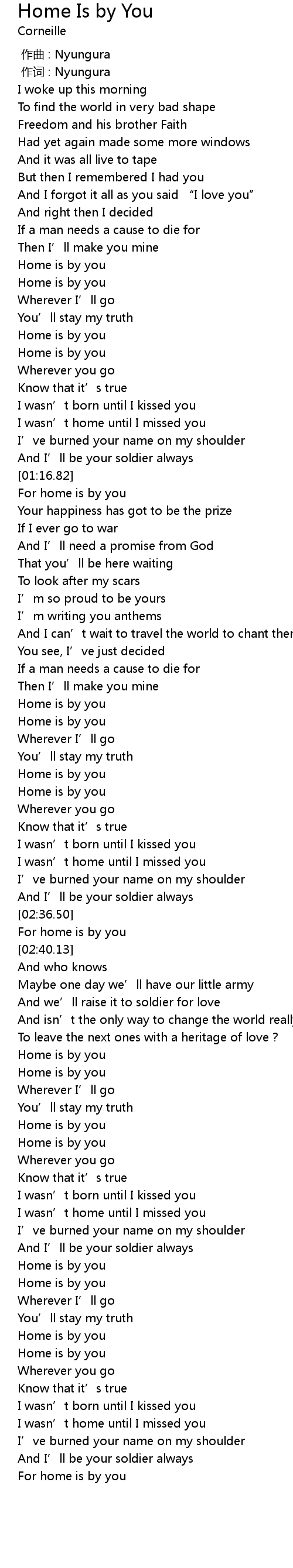 | [02:37.32] | For home is by you |