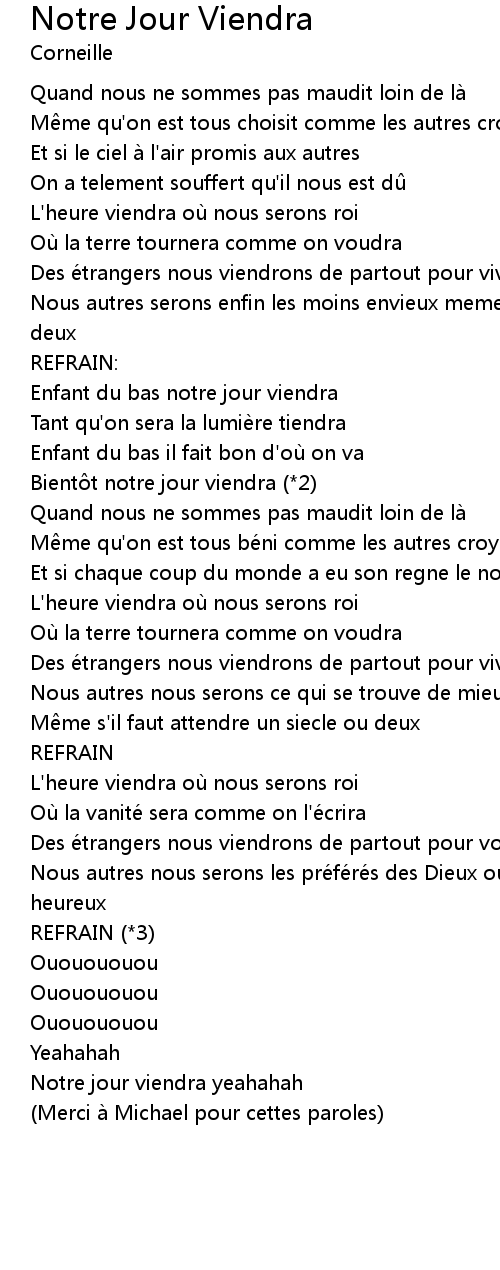 | Merci a Michael pour cettes paroles |