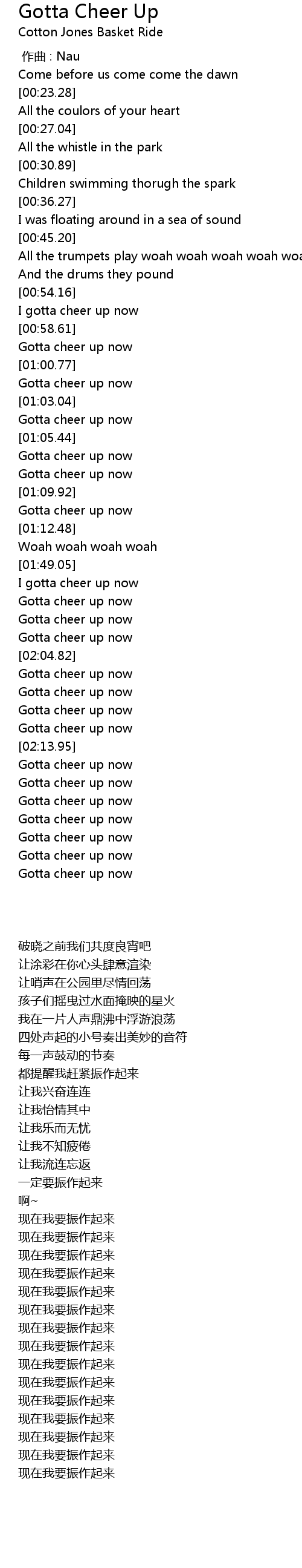 | [02:23.71] | Gotta cheer up now |