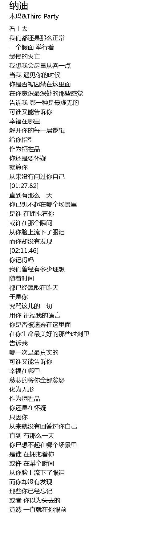 | [01:17.98] | 你还是要怀疑 |