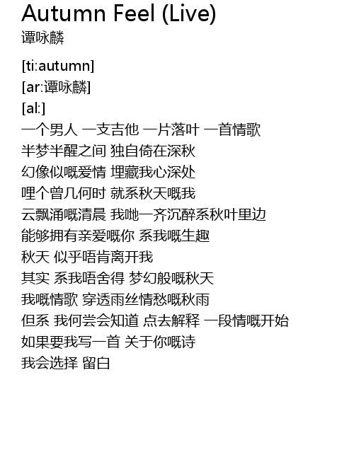 | [01:48.85] | 秋天 似乎唔肯离开我 |