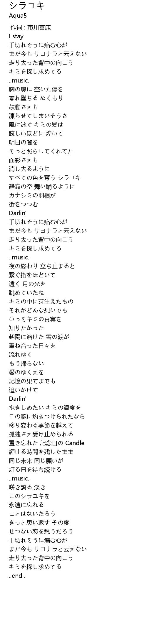 | [00:00.00] | 作词 : 市川喜康 |
