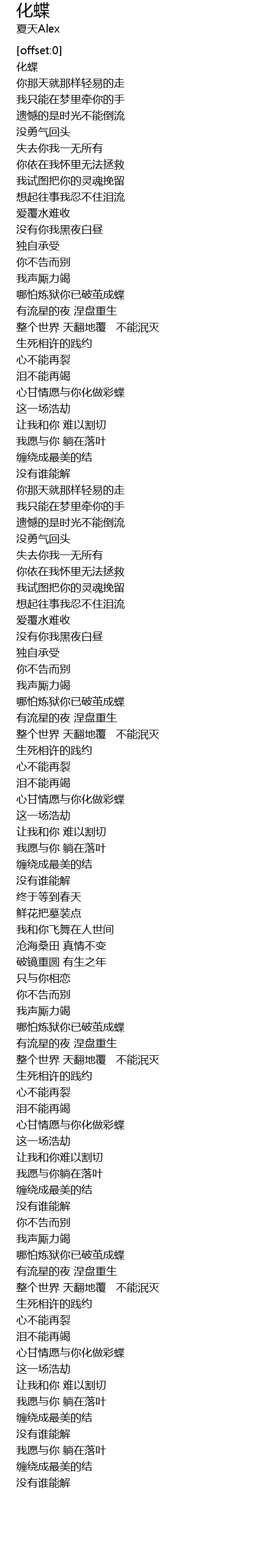 | [04:32.39] | 心甘情愿与你化做彩蝶 |