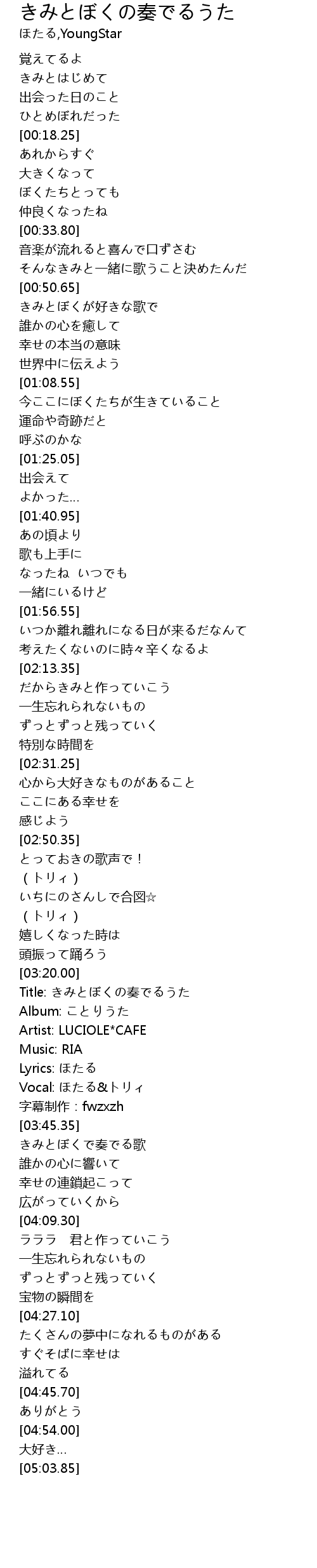 Vocal: ほたる&トリィ |