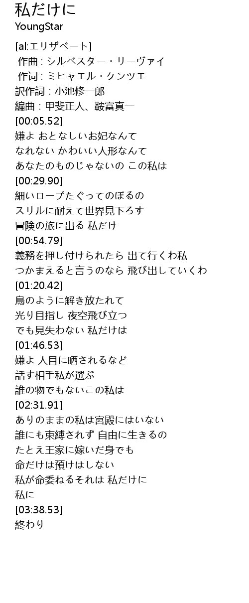 | [00:00.352] | 作词 : ミヒャエル・クンツエ |