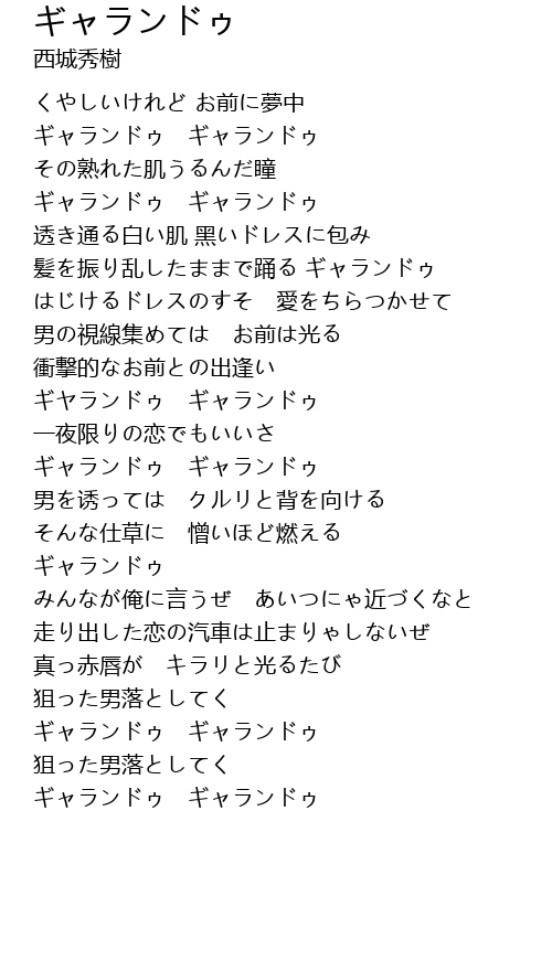 | [01:37.01] | ギヤランドゥ ギャランドゥ |