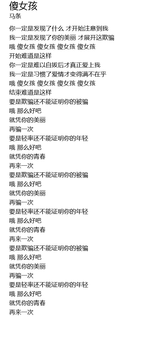 | [00:41.760] | 哦 傻女孩 傻女孩 傻女孩 傻女孩 |