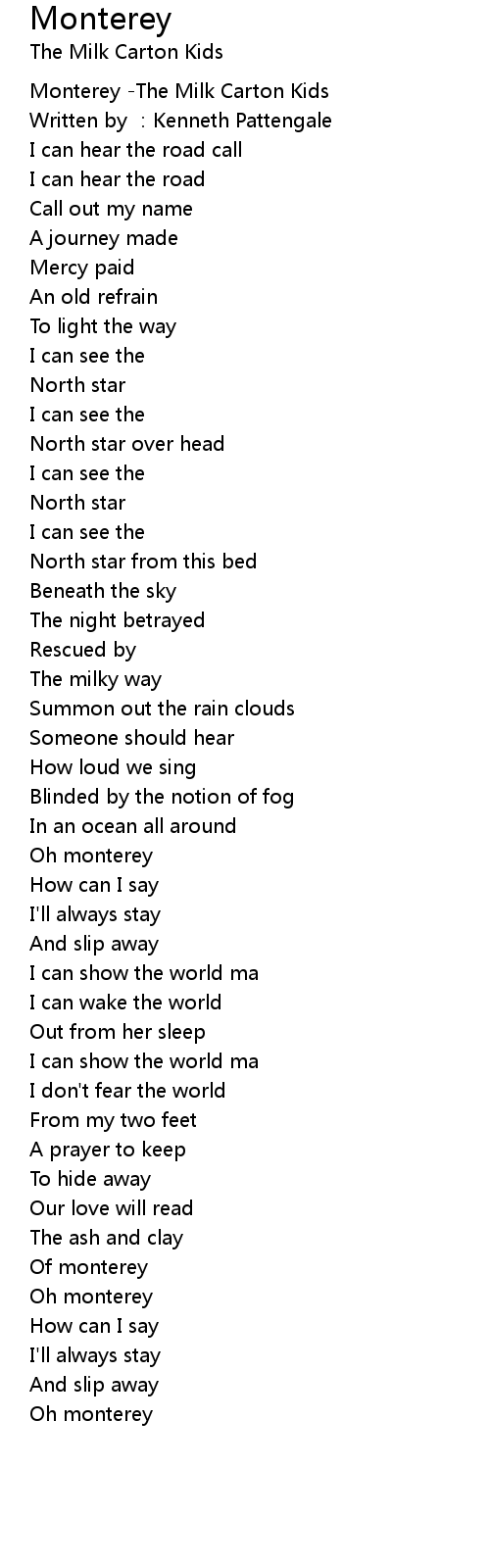 | [00:00.361] | Monterey The Milk Carton Kids |