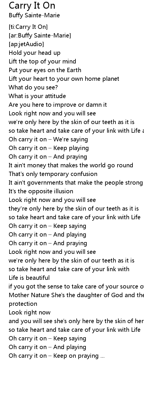 | [02:29:840] | Oh carry it on Keep on praying ... |