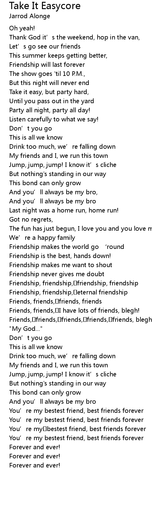 | [00:37.245] | Take it easy, but party hard, |