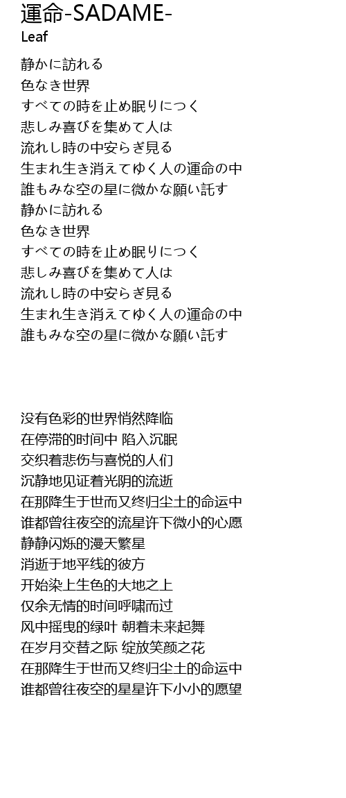 | [02:34.87] | 生まれ生き消えてゆく人の運命の中 |