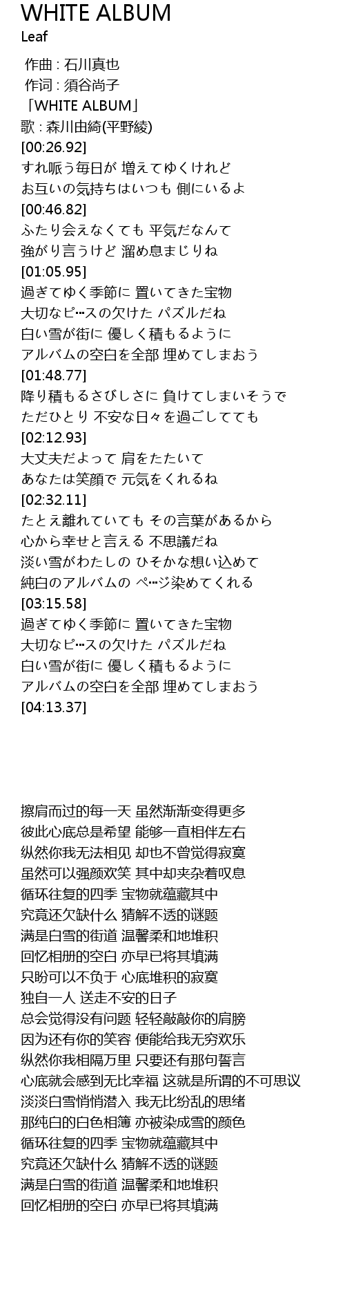 | [00:01.92] | 「WHITE ALBUM」 |