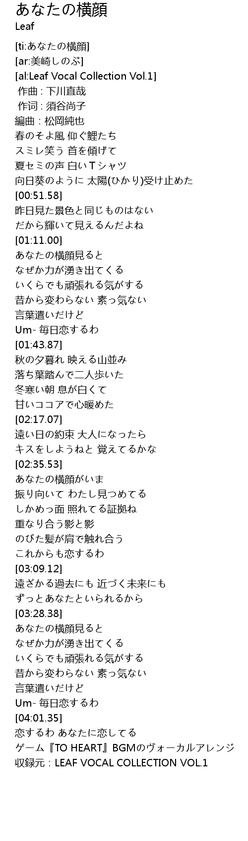 | [04:13.83] | 収録元:LEAF VOCAL COLLECTION VOL.1 |