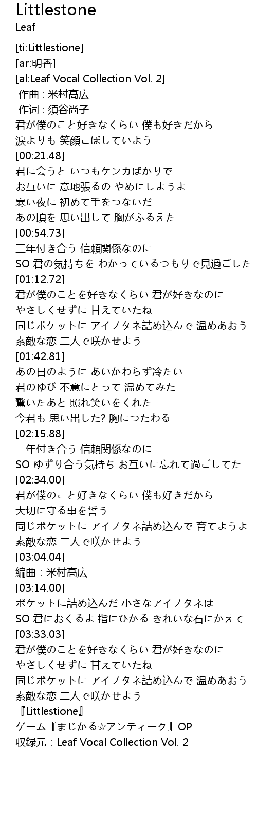 | [04:03.73] | shou lu yuan: Leaf Vocal Collection Vol. 2 |