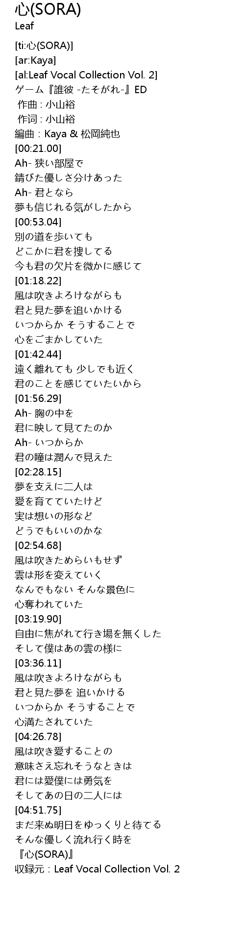 | [05:05.69] | 収録元:Leaf Vocal Collection Vol. 2 |