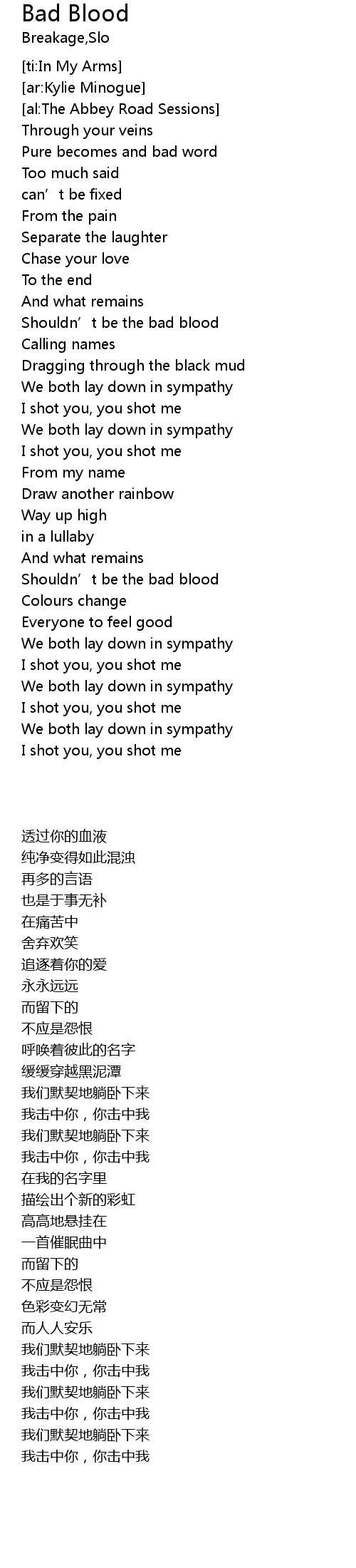 | [02:56.53] | Shouldn' t be the bad blood |