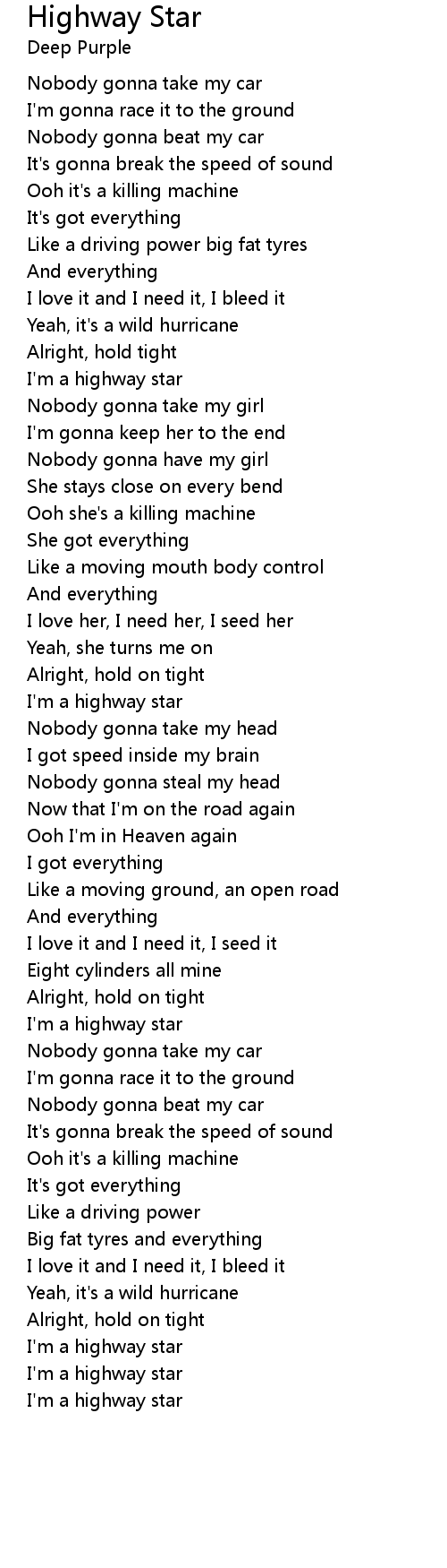 Highway Star Lyrics