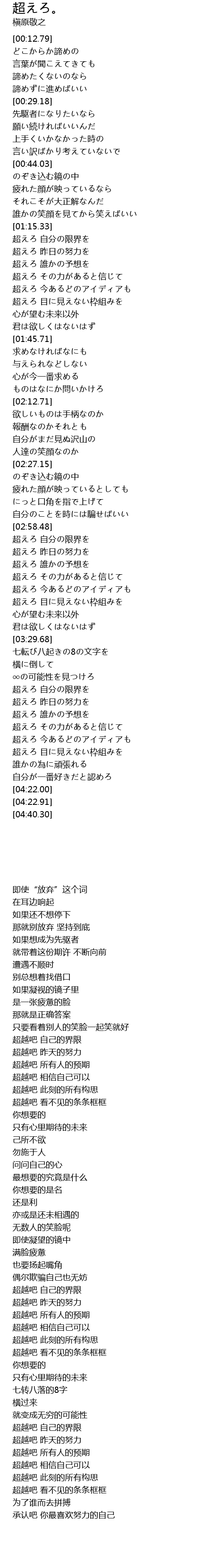 超えろ その力があると信じて |