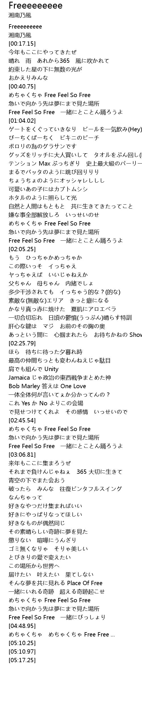 | [04:49.45] | めちゃくちゃ めちゃくちゃ Free Free ... |