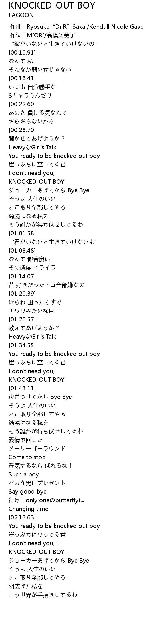 | [02:31.32] | KNOCKED-OUT BOY |