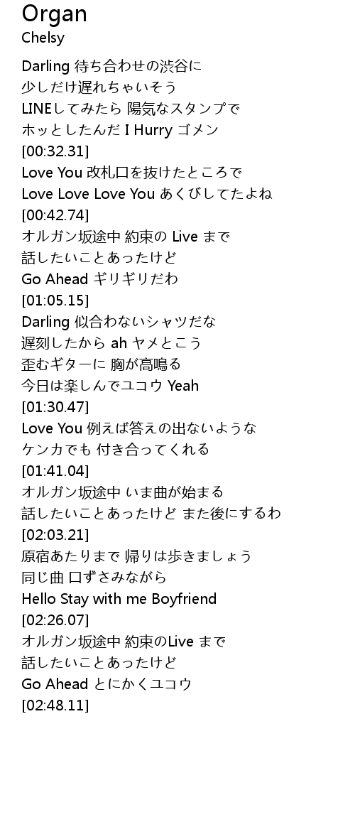 | [00:44.13] | オルガン坂途中 約束の Live まで |