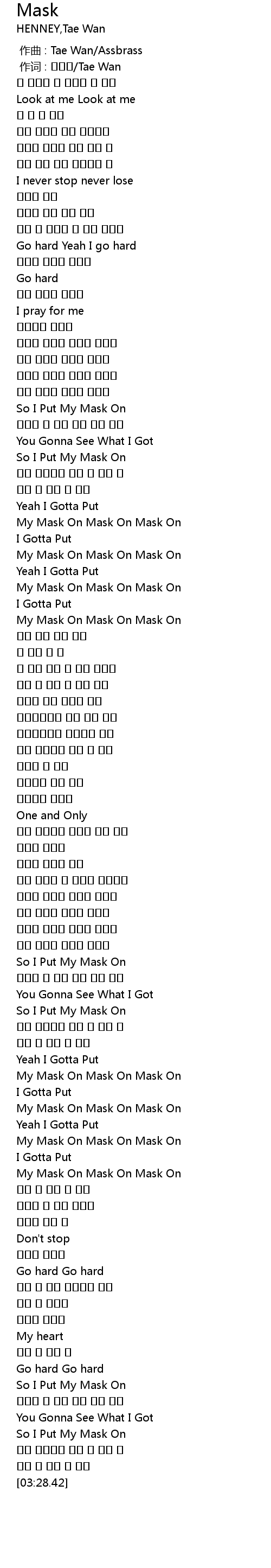| [02:40.68] | My Mask On Mask On Mask On |