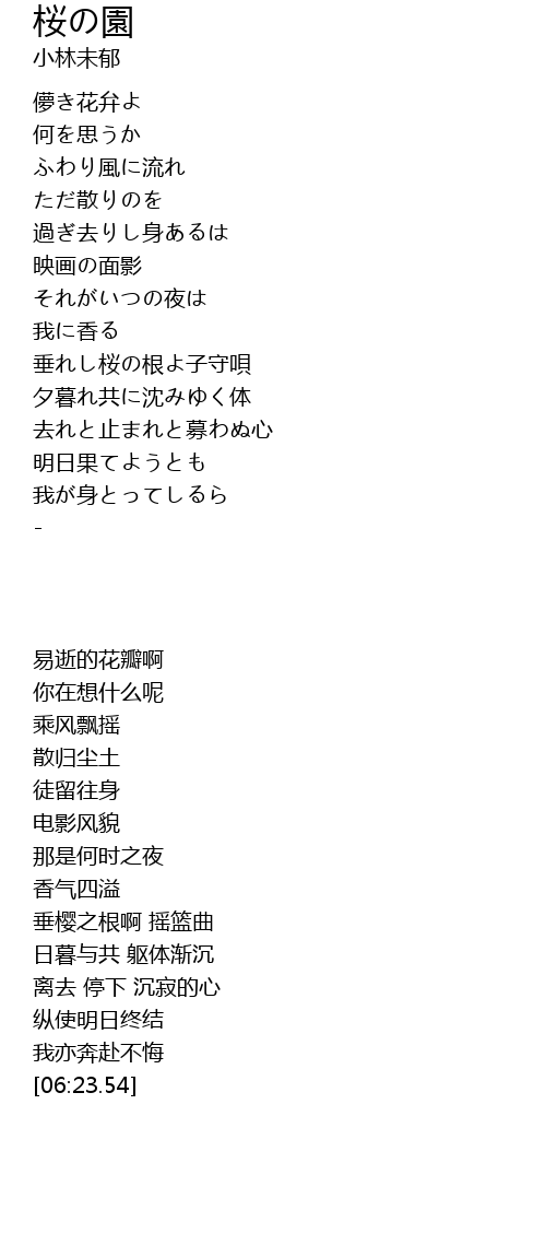 | [05:36.44] | 垂れし桜の根よ子守唄 |