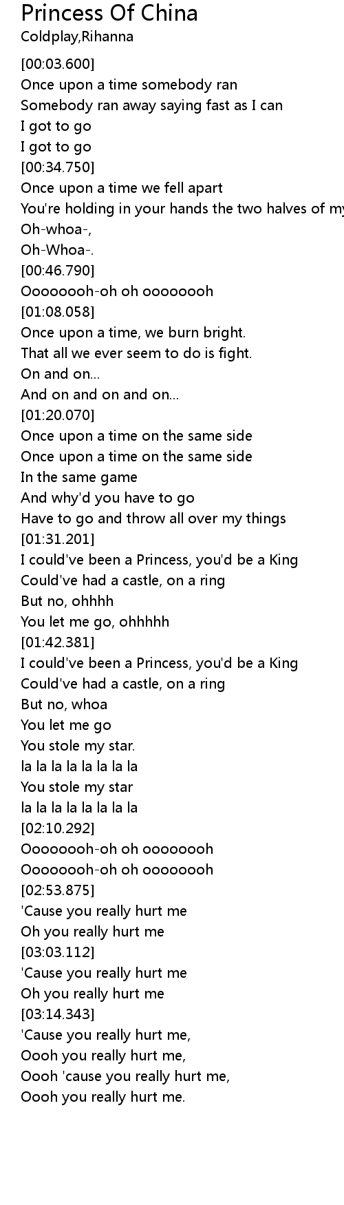 | [01:43.122] | I could've been a Princess, you'd be a King |