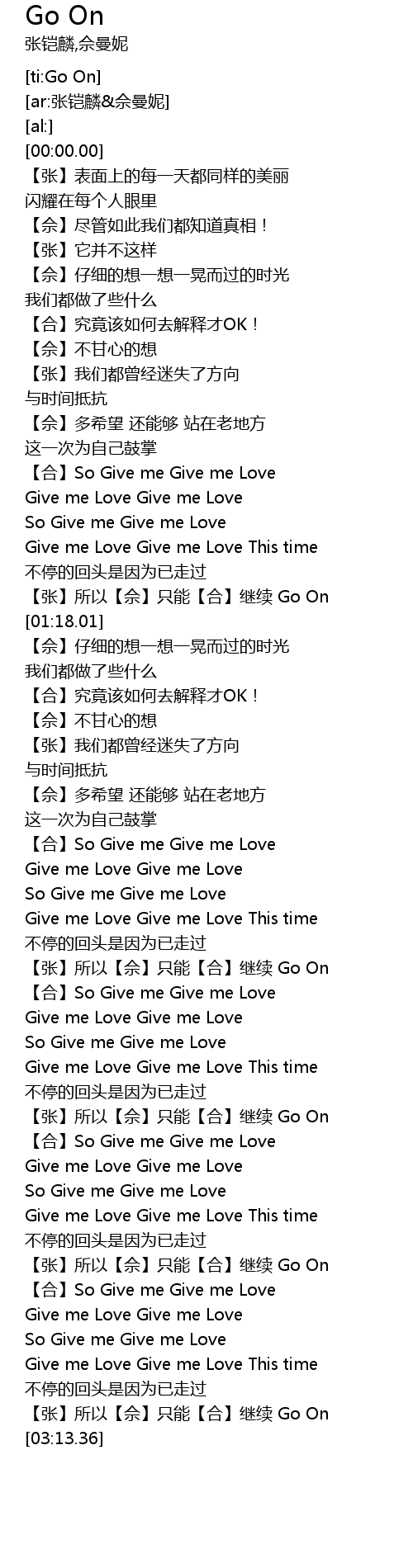 | [03:06.43] | 【张】所以【佘】只能【合】继续 Go On |