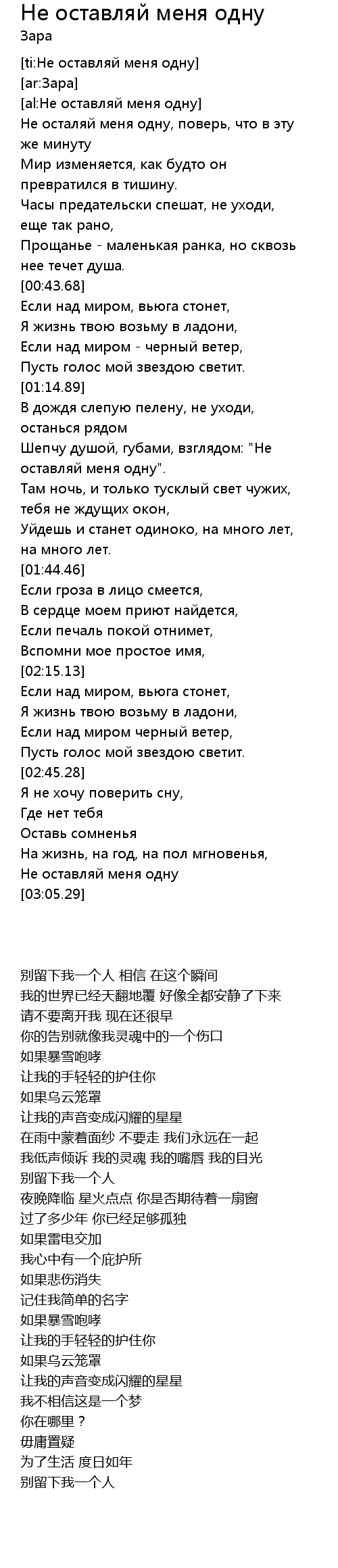 Не осталяй меня одну, поверь, что в эту же минуту |