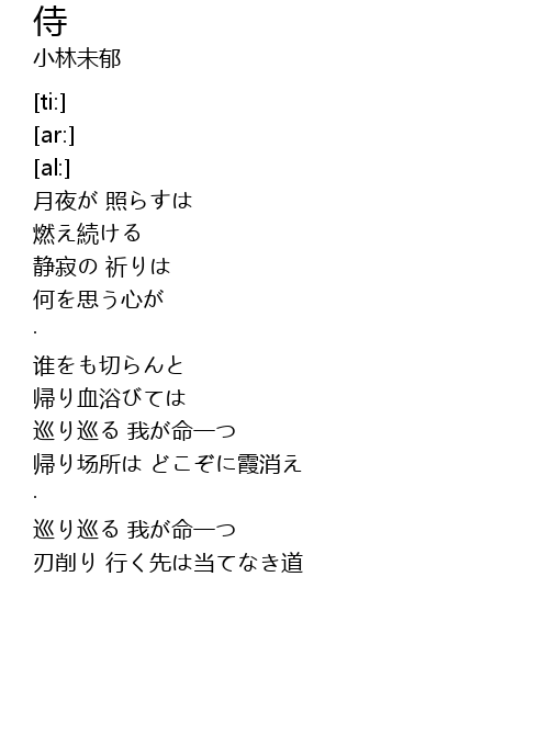 | [02:49.34] | 刃削り 行く先は当てなき道 |