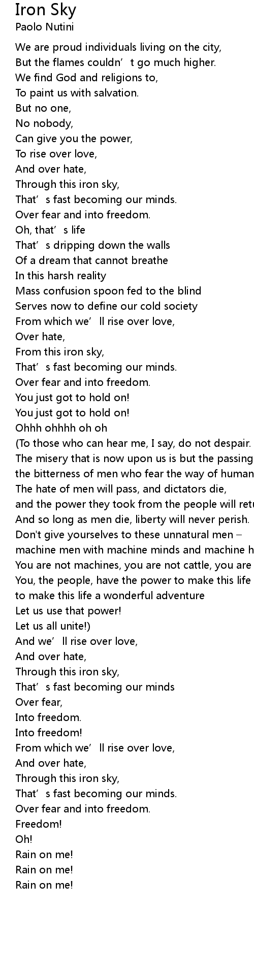 | Song | Iron Sky |